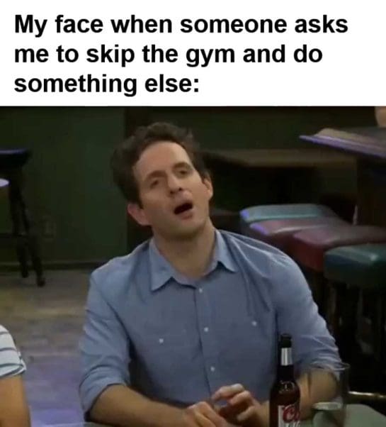 My face when someone asks me to skip the gym and do something else