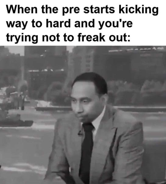 When the pre starts kicking way to hard and you’re trying not to freak out