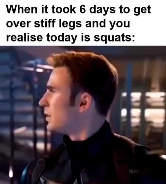 When it took 6 days to get over stiff legs and you realise today is squats