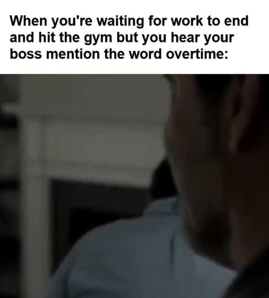 When you’re waiting for work to end and hit the gym but you hear your boss mention the word overtime