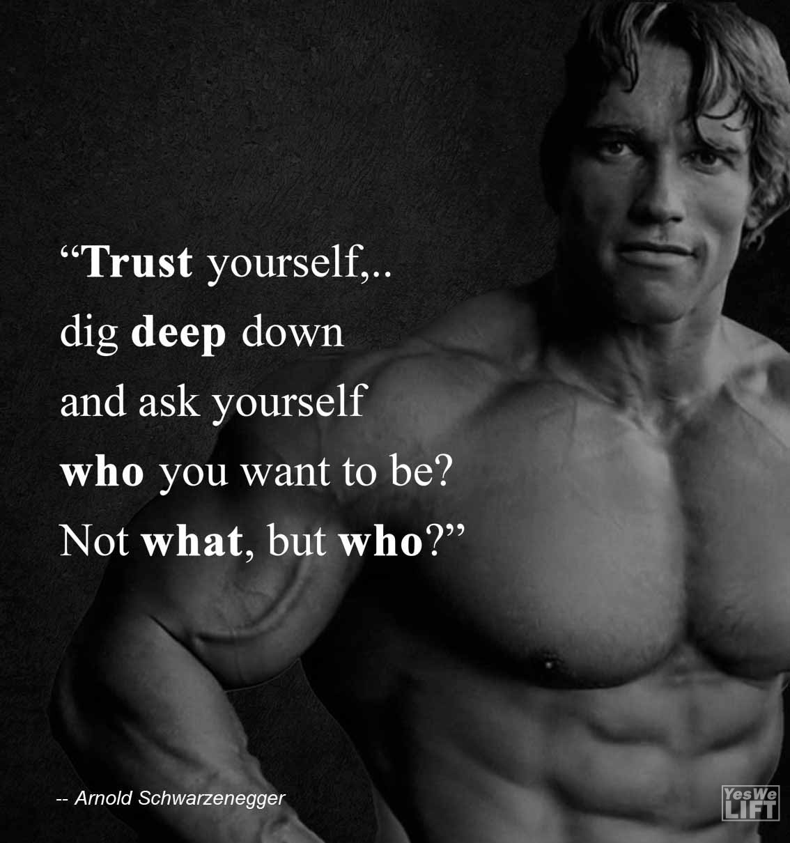 QuotesTrust yourself,dig deep down and ask yourself who you want to be not what, but who Trust yourself,dig deep down and ask yourself who you want to be not what, but who When a non lifter tells you a calorie is a calorie The look i give people while on my meal plan