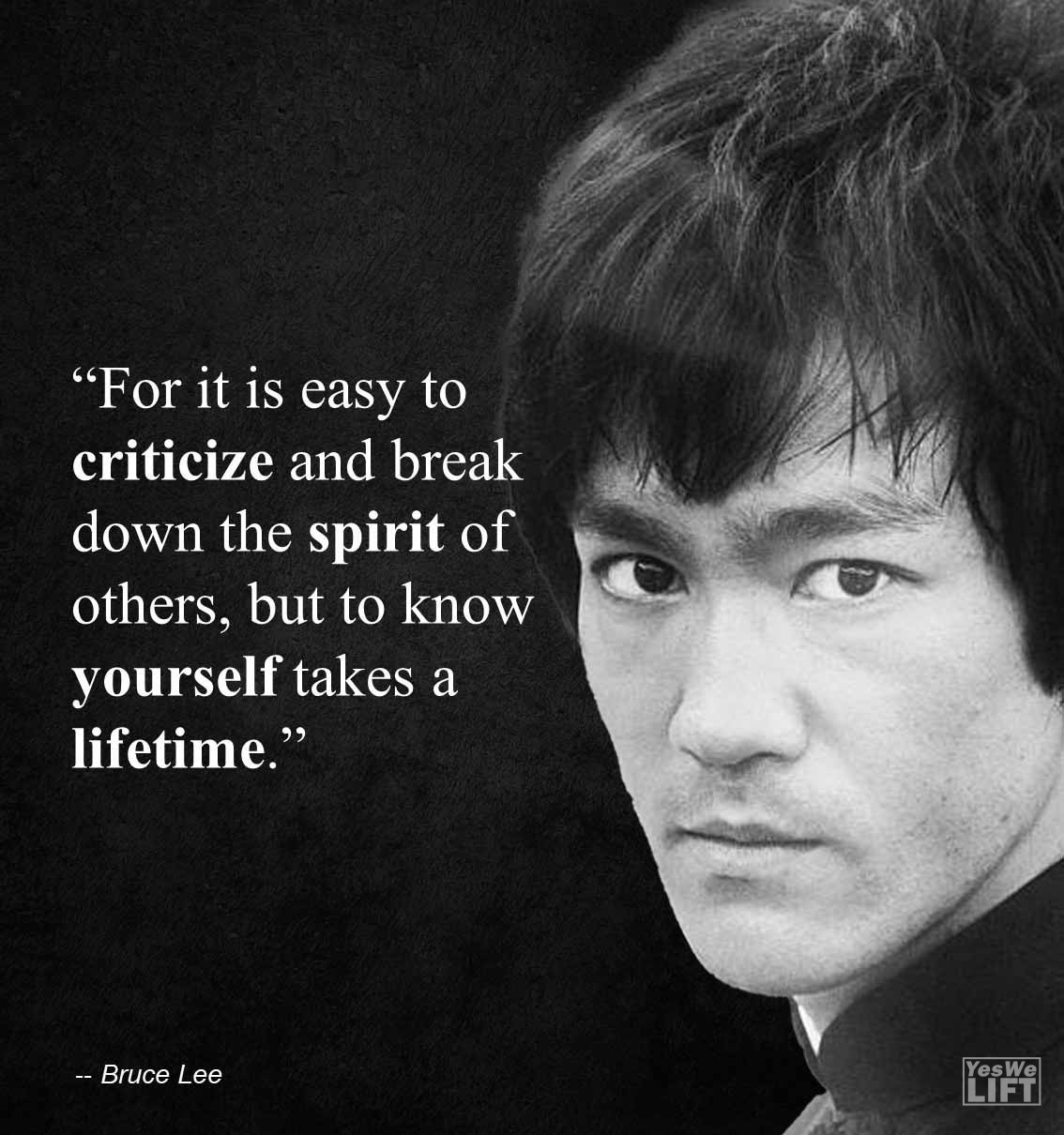 QuotesFor it is easy to criticize and break down the spirit of others, but to know yourself takes a lifetime For it is easy to criticize and break down the spirit of others, but to know yourself takes a lifetime When the sarm goblins think i use gear and ask if i can get them some Finished workout, forgot post workout drink