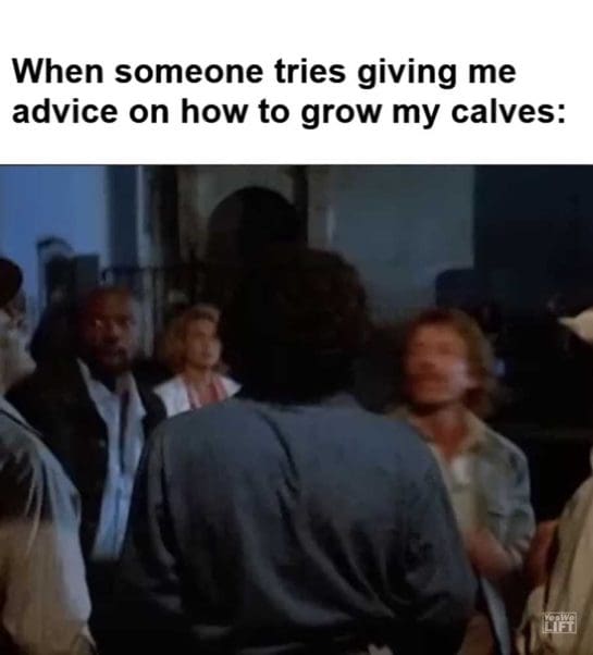 When someone tries giving me advice on how to grow my calves