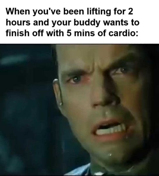 When you’ve been lifting for 2 hours and your buddy wants to finish off with 5 mins of cardio