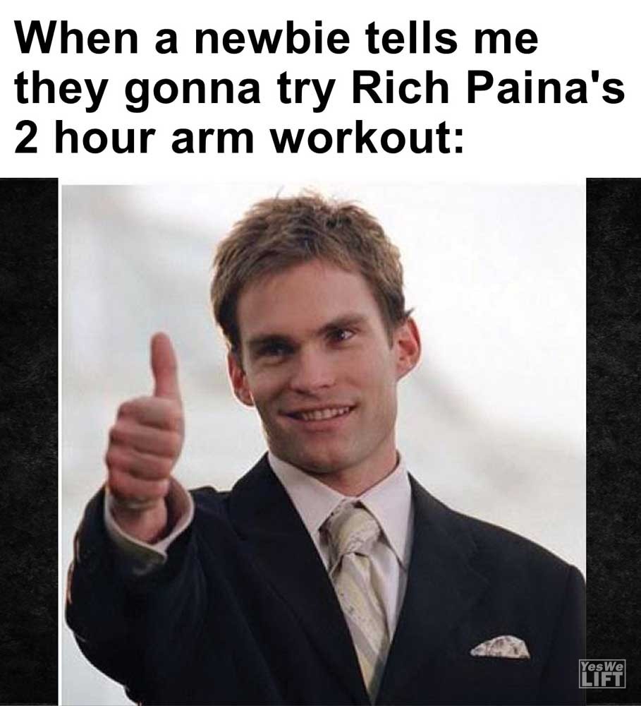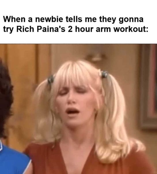 When a newbie tells me they gonna try rich paina’s 2 hour arm workout