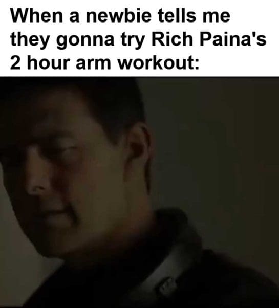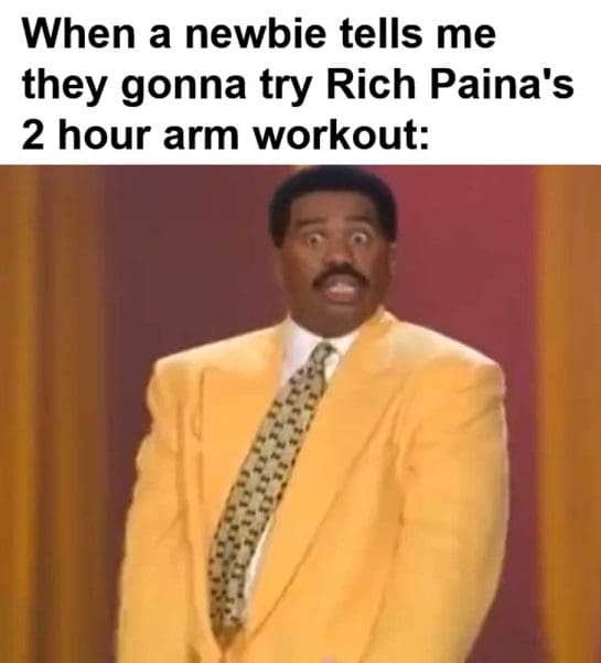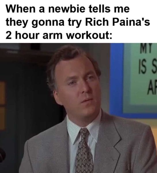When a newbie tells me they gonna try rich paina’s 2 hour arm workout