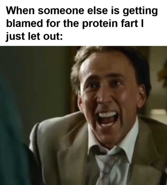 When someone else is getting blamed for the protein fart i just let out