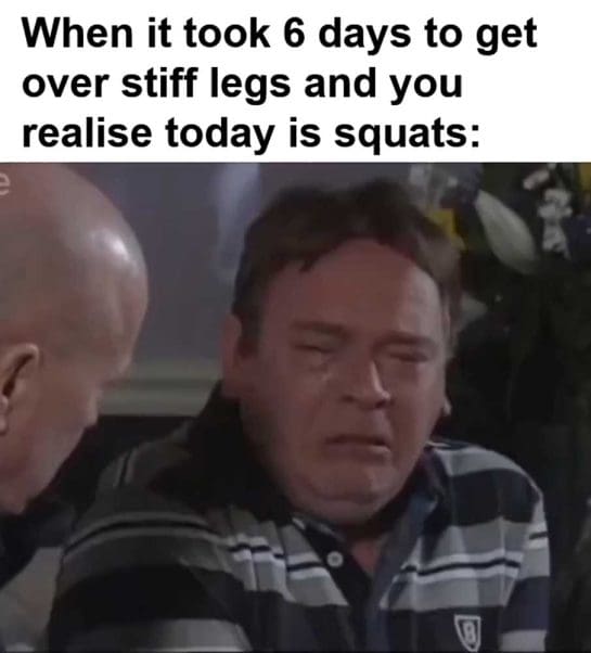When it took 6 days to get over stiff legs and you realise today is squats