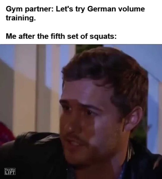 Gym partner let’s try german volume training. me after the fifth set of squats View Full Post Memes, VideoGym, Partner, Squats, Train3 days ago1 day ago