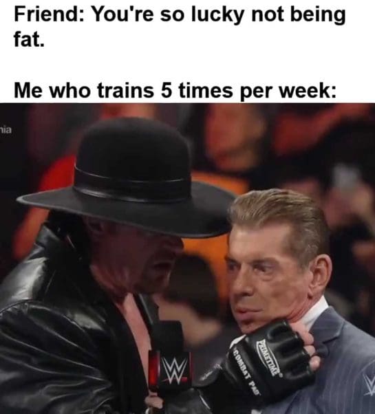 Friend you’re so lucky not being fat. me who trains 5 times per week